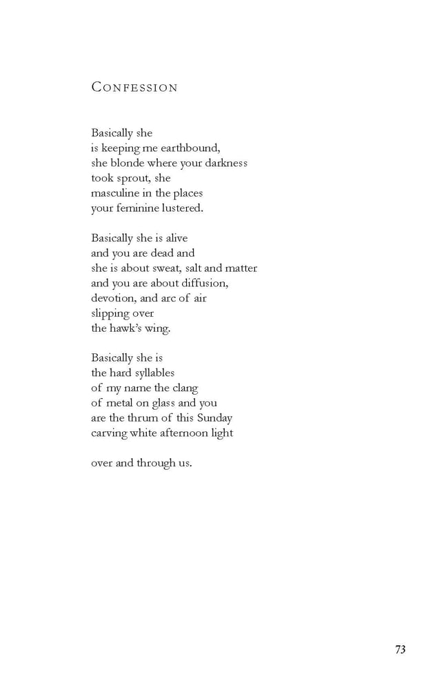 In Here is the Night and the Night on the Road she asks “How do you get dressed to go watch someone die?” when “All I can feel is the you-hole, the place where you aren’t.” This is a book witnessing love and loss and love again. The layers multiply into interwoven textures of grief: for the lover’s lost body and the disappearing world that sustains the lovers, a world of “collision, echo of colonization.” The violence of a car crash’s twisted metal is haunted by the violence of forests torn up for roads—both victims of the same hand of man. This matters, Gomery declares, “The land on which we lost you is a colonized terrain, and it is hard to know exactly how that matters, except that it matters in every single way.” In the long tradition of poems about grief, Gomery is a necessary voice. This is an exquisite study in the suddenness of numbered days and the radiant pain of living with love “tumbling forth.”